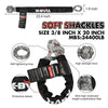 X-BULL 7/8 in x 30ft power recovery and traction rope has a breaking strength of 34000 pounds, which can save you from muddy and viscous environment. You will be shocked by the carrying capacity of X-BULL power recovery rope. SPECTRA fiber soft shackles: Our kit includes a pair of 3/8 "x 22" SPECTRA fiber soft shackles with a breaking capacity of 34000 pounds. Our truck shackles are equipped with protective sleeves, which can protect the power rope from wear, and heat shrinkage can improve the stability of the knot.