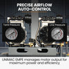 The ACM-500s has 2 twin-cylinder motors. With UNIMAC Electronic APC, the motors; output is equalised. That means the motors run at maximum efficiency for fast air tank filling.