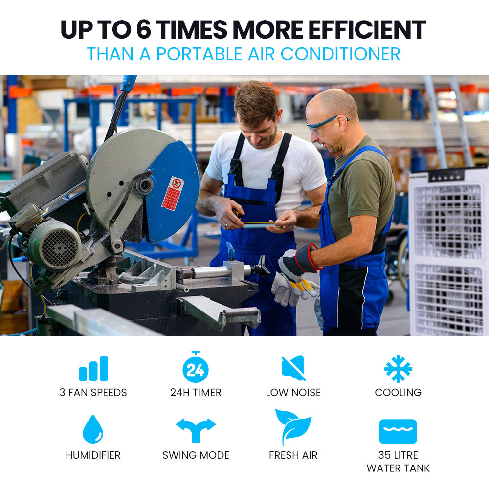 Its high power, low maintenance and portable design with locking castor wheels make it perfect for keeping staff happy in commercial and industrial premises such as automotive workshops, gyms, offices and warehouse units.