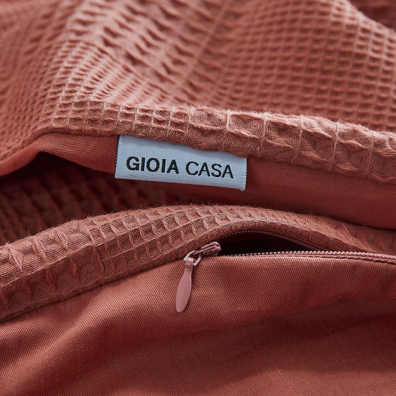 100% Cotton checkered waffle quilt cover set king size -Terracotta