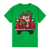 100% Cotton Christmas T-shirt Adult Unisex Tee Tops Funny Santa Party Custume, Car with Reindeer (Green), 3XL