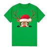 100% Cotton Christmas T-shirt Adult Unisex Tee Tops Funny Santa Party Custume, Reindeer Head (Green), S