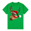 100% Cotton Christmas T-shirt Adult Unisex Tee Tops Funny Santa Party Custume, Reindeer (Green), 3XL