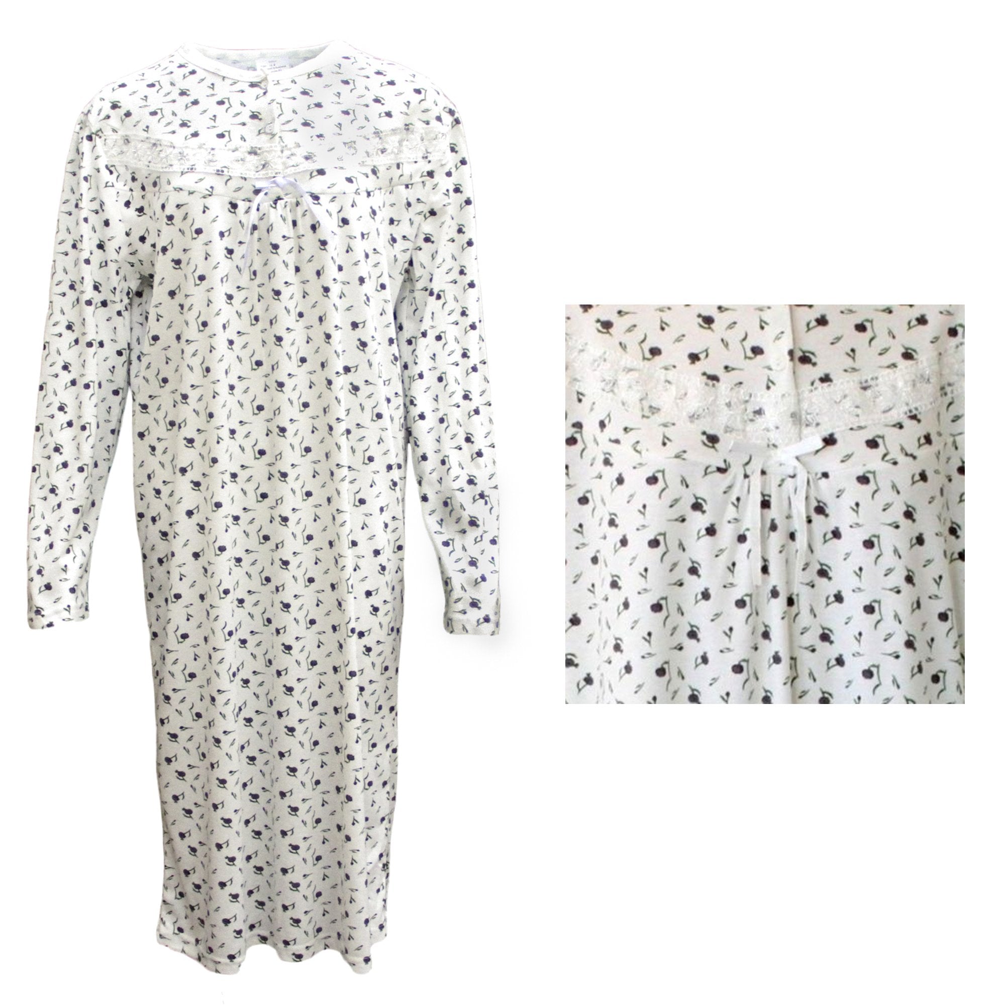 100% Cotton Women Nightie Night Gown Pajamas Pyjamas Winter Sleepwear PJs Dress, Red & Purple Flowers, 18