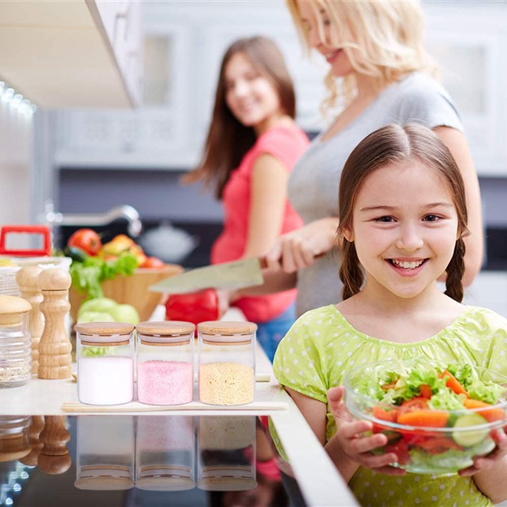 Specififation: a set of 12 clear glass food storage containers&jars,upgrade kitchen food storage jar's lids, air-tight seal for keeping food fresh more longer.Glass spice canisters set is made of food-grade high borosilicate glass, 100% lead-free, non-toxicis, is healthier than plastic jars and more cost performance.