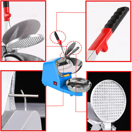 - When in use, the outlet of the ice particles cannot be blocked, otherwise it will cause a jam to the disk and burn out the motor. If the above phenomenon occurs, please immediately find out the reason, cut off the power, and lift the handle.