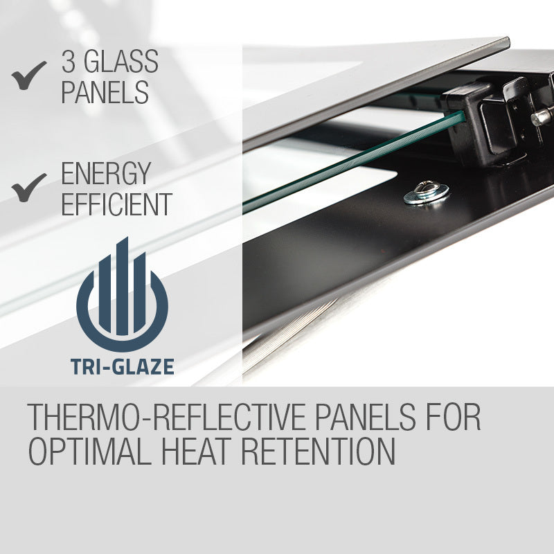 The thermo-reflective glass door provides excellent insulation, to guarantee the oven performs for you every time. A clever air-cooling system that is built into the door ensures the window and handle are never hot to touch.