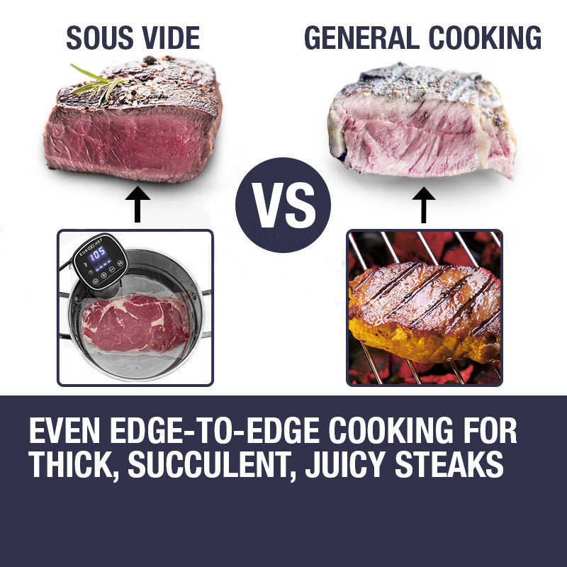 Sous vide is a classic cooking method of professional chefs that is surprisingly simple to do with the right tools for incredible results. A controlled low temperature water bath slow cooks food in a sealed bag through and through while retaining all of its delicious flavor and juices. Pre-set the time and temperature, then simply walk away leaving your food to simmer - it’s that simple. Perfect for busy people who still want to prepare delicious meals at home without being tied to the kitchen.
