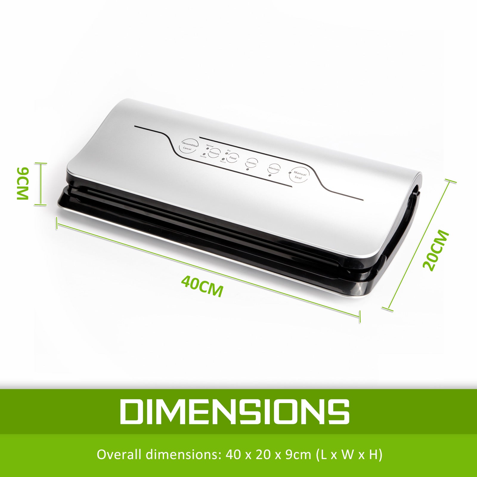 Did you know that vacuum sealing food massively increases the time it can be stored without freezing? Keep your food fresh with this Home Ready Commercial Grade Food Vacuum Sealer. The Food Sealer removes air to preserve the freshness of your fruit, veggies and dairy products to prolong their shelf life and minimise food waste at home.
