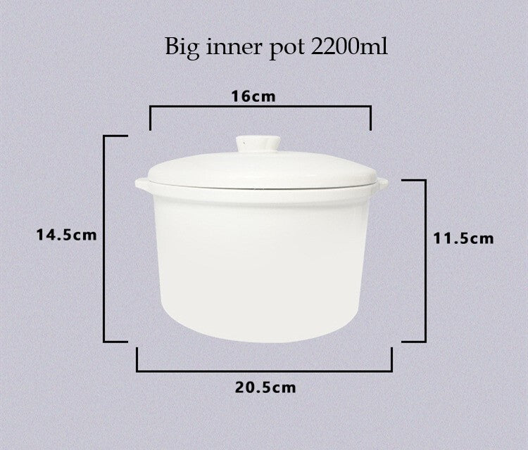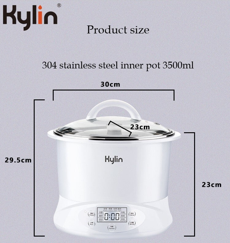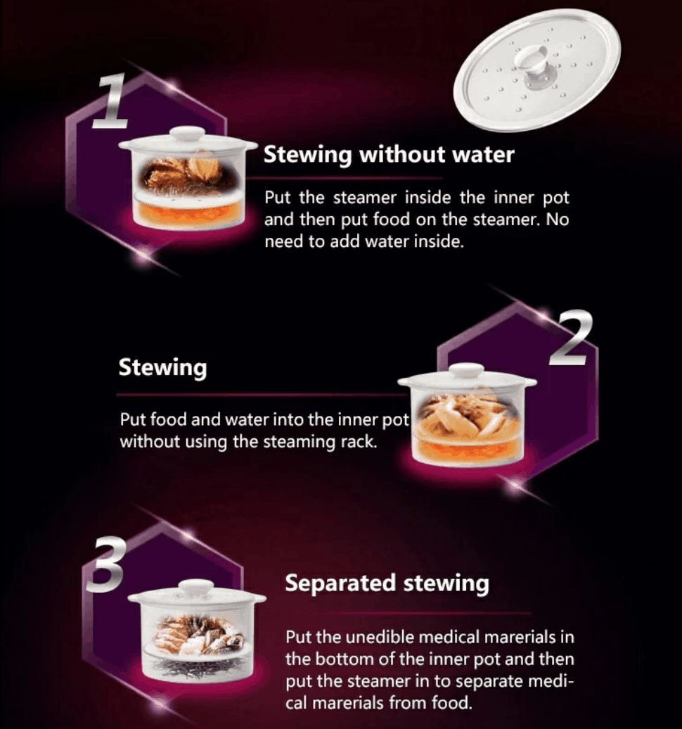 Kylin Electric Multi-Stew Cooker Stainless Steel/ Ceramic Steamer Pot 2.2L is made up of a premium 304 food-grade stainless steel stewing pot that provides out-of-water stewing. It can effectively keep the nutrition and bring out the best flavor. One cooker with 4 ceramic inner pots. We guarantee you that it will be convenient for your cooking.