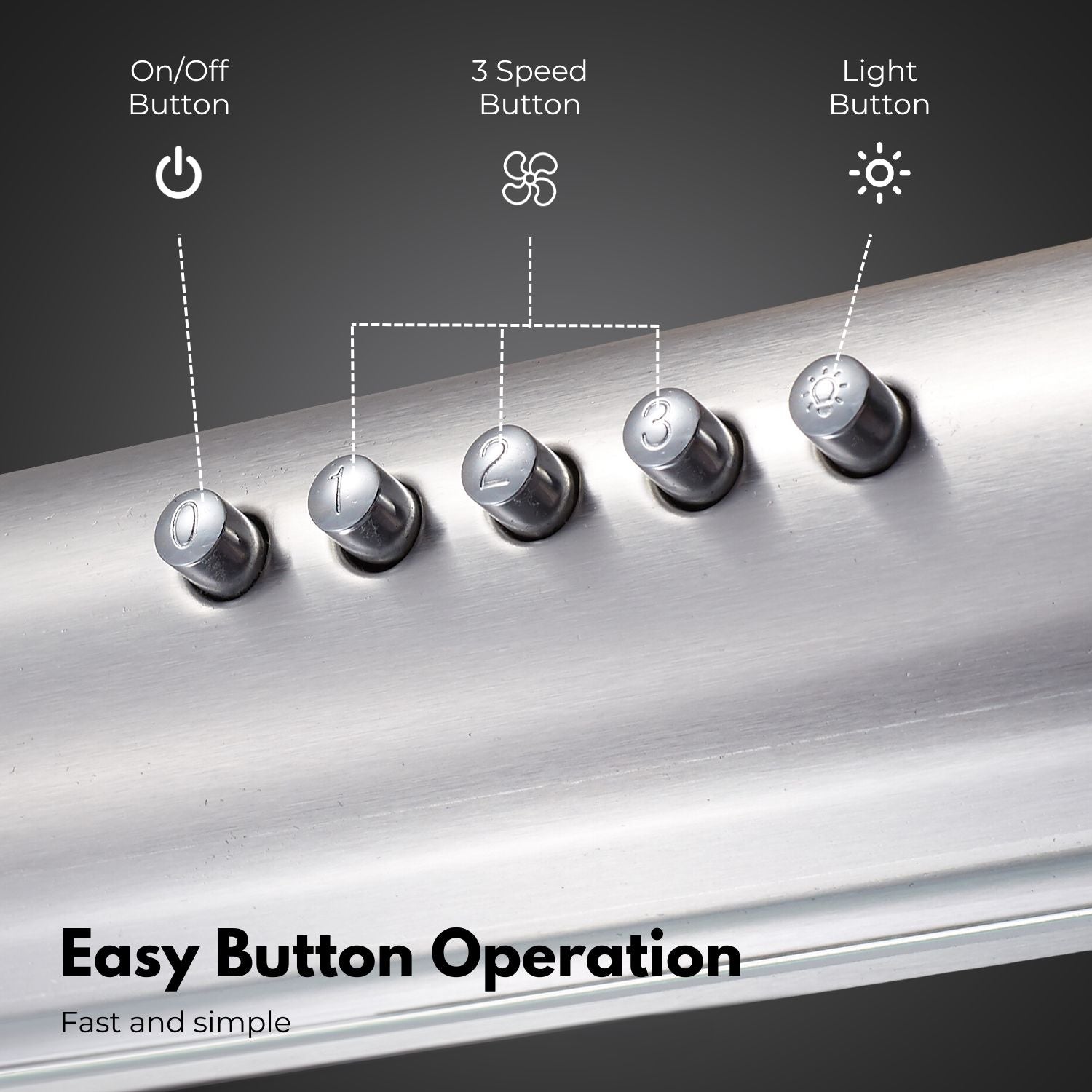 Versatile 3 Airflow Speeds: Experience flexibility in ventilation with our rangehood's 3 airflow speeds, allowing you to adjust suction power according to your cooking needs. Enjoy high suction power, efficiently removing cooking odors and smoke for a fresher kitchen environment.
