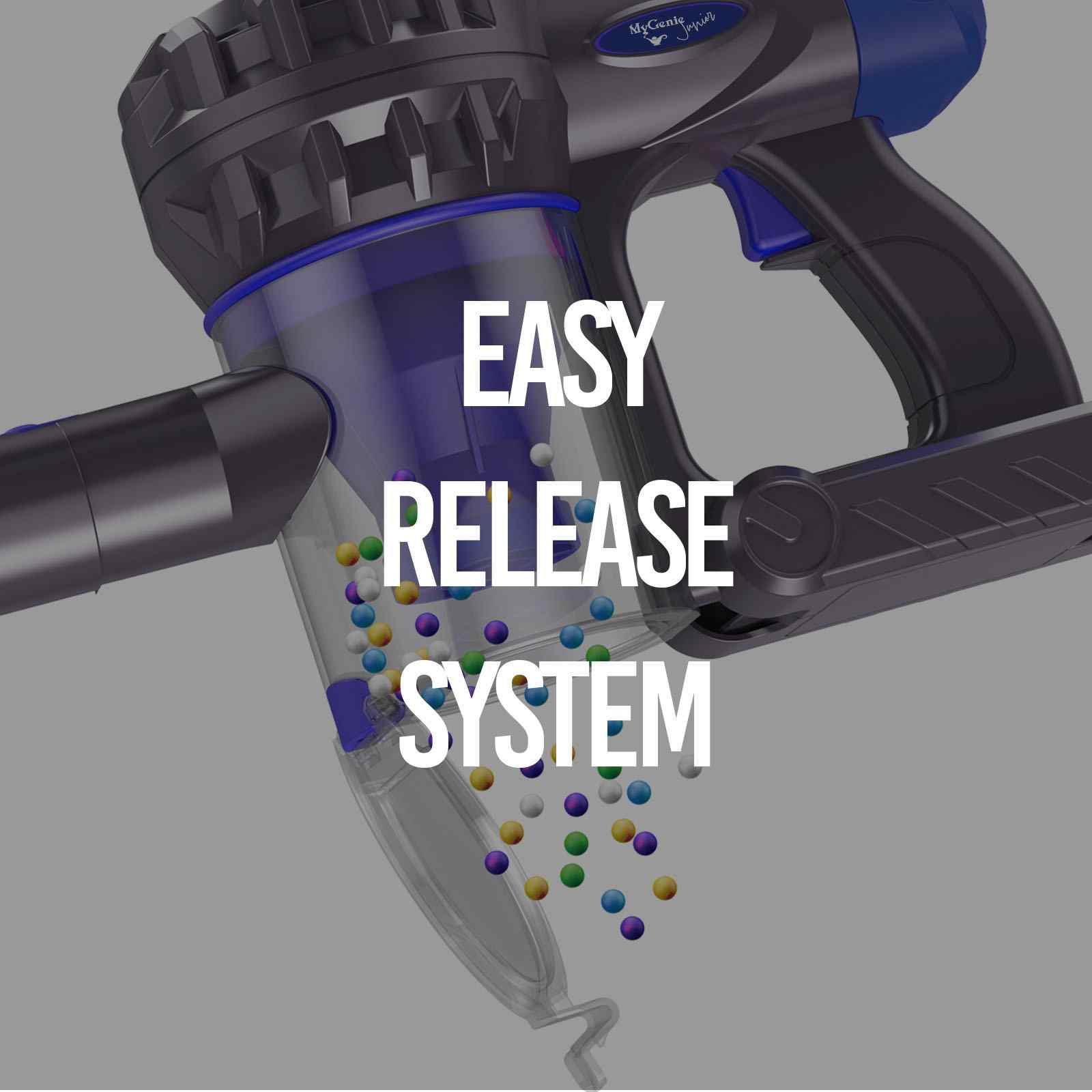 The My Genie Jnr JX5 Stick Vacuum Cleaner has all the functionality of the real thing, with working suction and dust catcher, your little one can help clean mess, empty the dustbin, change attachments, and easily convert their vacuum from stick to handheld whilst developing problem- solving and hand-eye coordination skills.