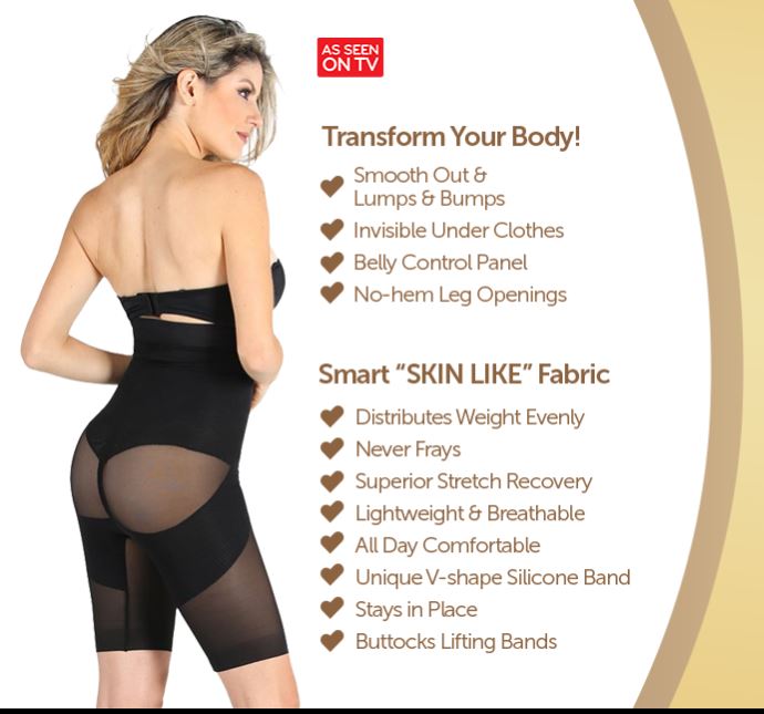 Our secret is a skin-like fabric that moves with you as it contours to your curves & shapes body for a slimmer appearance. Super soft, silky, & breathable for all day wear, the fabric’s superior stretch recovery never loses shape! If features strategically placed double mesh zones to smooth out lumps & bumps while bands lift & shape your buttocks! Transform our body in seconds.