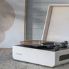 The Mercury Turntable is a tribute to the golden era of Hollywood, its premium design will leave you mesmerized. With a vintage humidor-inspired look, the 3-speed turntable boasts luxury finishes and textures that make it stand out from an ordinary record player. With the built-in full-range stereo speakers, RCA and Bluetooth connectivity, and a headphone jack, you have multiple options to listen to your music.