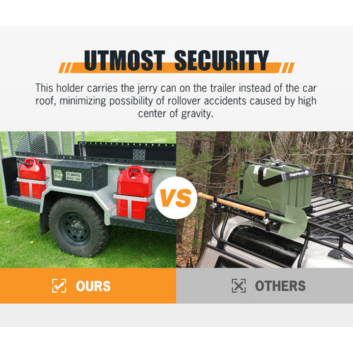 ?Optimized Space-This jerry can holder maximize storage efficiency with space-saving design, ensuring ample room for other gear.