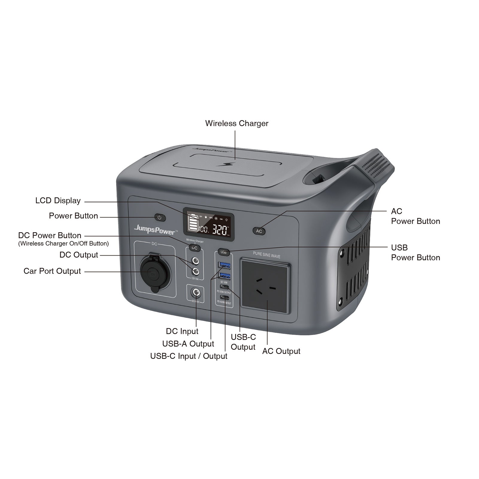 Embrace the future of portable power with the JumpsPower AC320, a robust power station meticulously crafted to keep you connected, no matter where you are. Australian owned and operated, this sleek grey unit is more than just a power supply; it's a symbol of innovation and reliability.