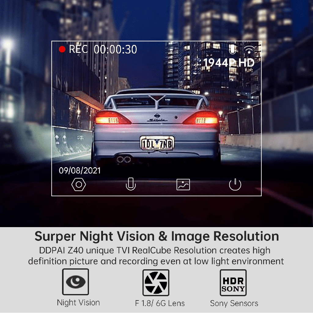 DDPAI Z40 Dual with GPS Wi-Fi Front and Gear Dash Camera DVR Car Dashboard Camera Black