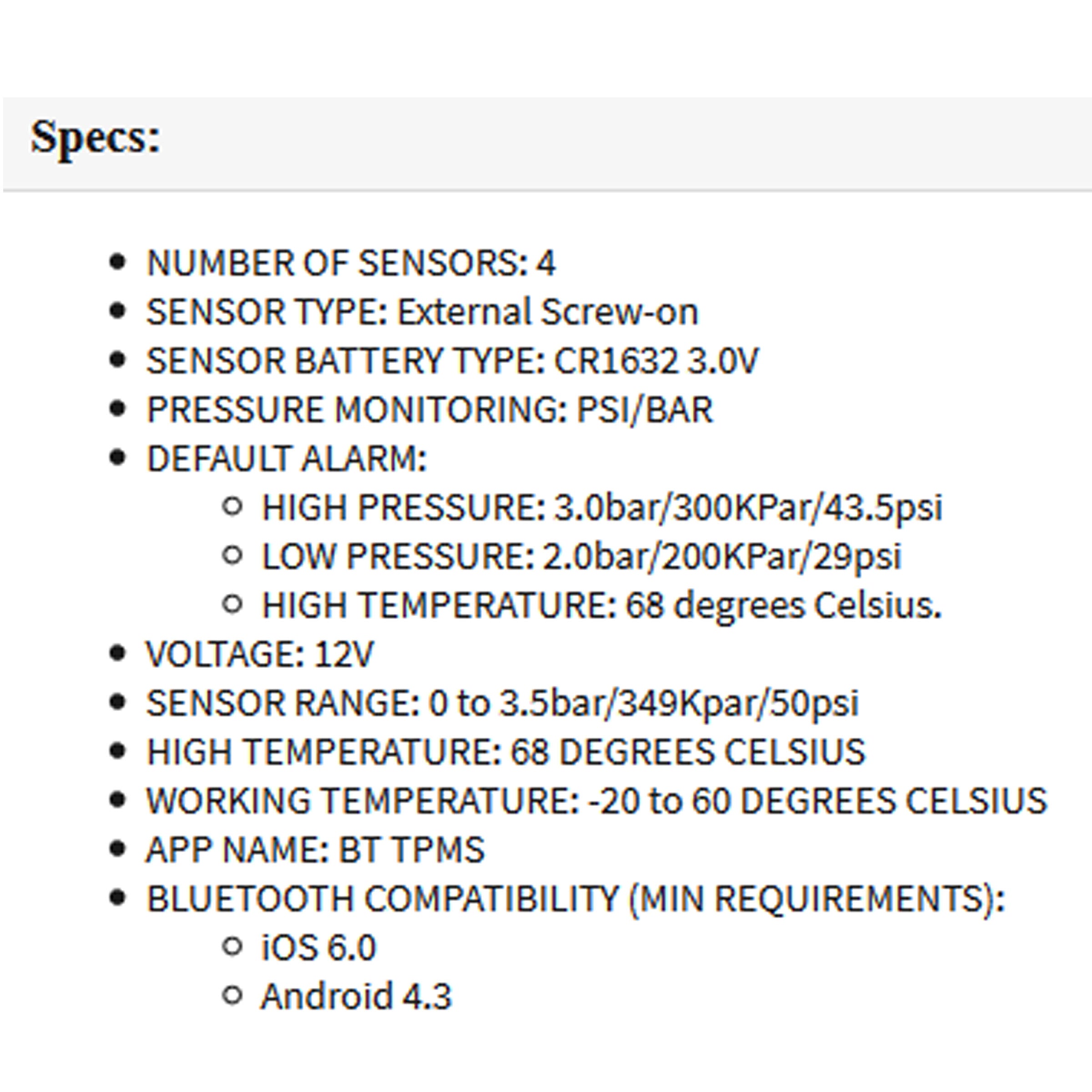 This system comes with built-in Bluetooth, simply pair your phone to the tyre pressure monitors via the free app and view real-time pressures.