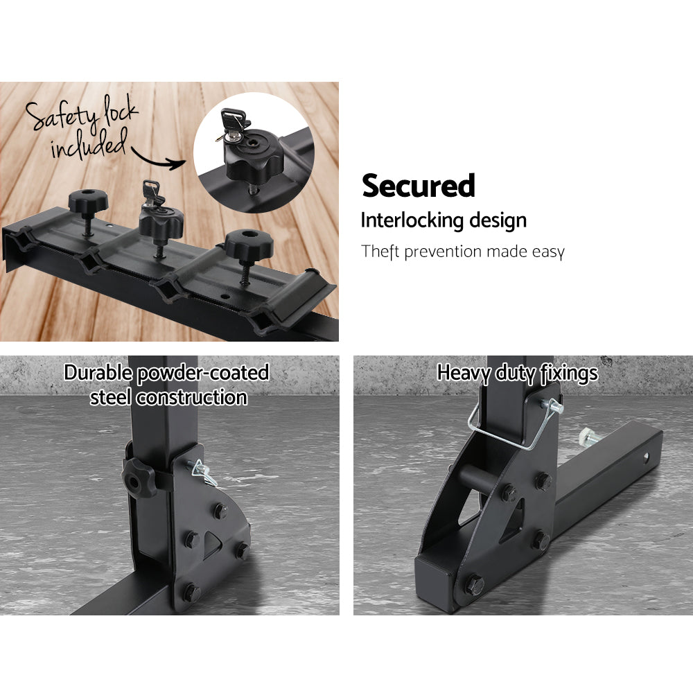 The Carrier is made from durable powder-coated steel and compatible with any 2-inch hitch receiver. Using the carrier is just a simple matter of loading the bike onto the rubber-protected holder and locking it down firmly with the safety lock. When it comes to keeping the Carrier after use, just remove and fold for hassle-free storage