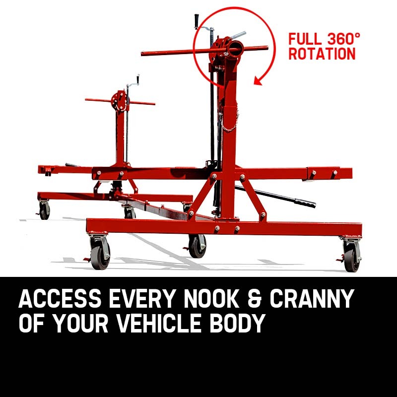 This highly practical machine is perfect for all kinds of automotive repairers and restorers - whether professional or enthusiasts. It alleviates the stresses and strains from negotiating yourself around a project, giving you the control to make the car work around you. The NEW T-Rex B2000 Hydraulic Auto Body Rotisserie will elevate your automotive project experiences. Invest in yours today!