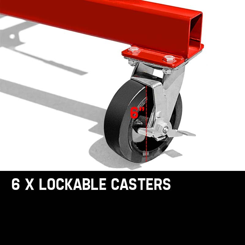 The B2000 car rotisserie features twin 8 tonne hydraulic rams that enable the operator to adjust the height of both the front and rear of the vehicle for greater precision. The vehicle body can be set in 12 pre-set positions, and locked into place with spring loaded pins situated at each end of the unit. It’s equipped with 6x6 inch lockable caster wheels that provide easy transportation around a workshop, or beyond the workshop, while also giving fixed stability whenever necessary. Constructed with heavy-duty powder coated steel, it’s highly resistant to abrasions, oils and greases.