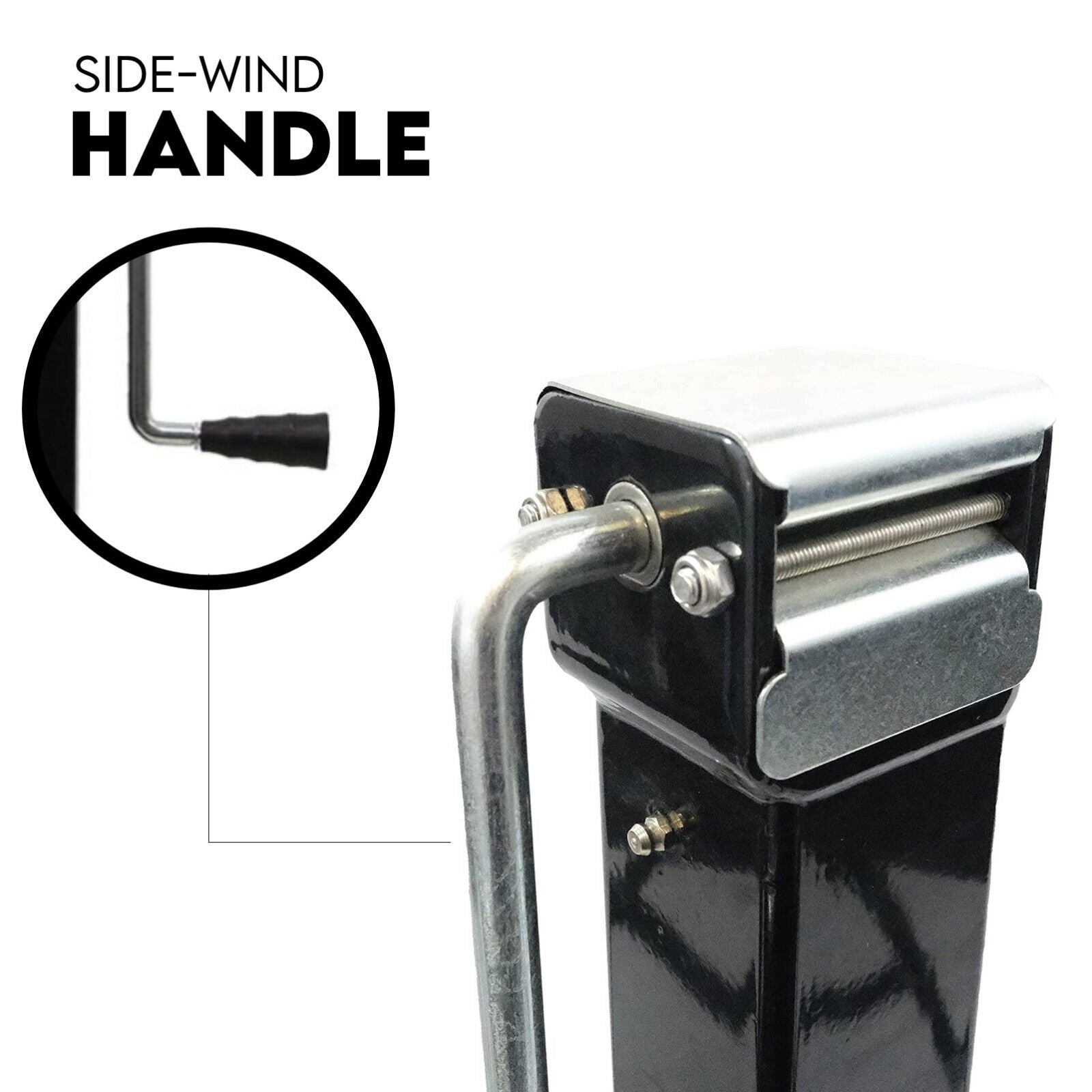 The side-wind handle is easy to grip and doesn't take a whole lot of effort to operate the jack, which lets you raise the entire trailer up and down easily - minimal cranking for quick adjustment.