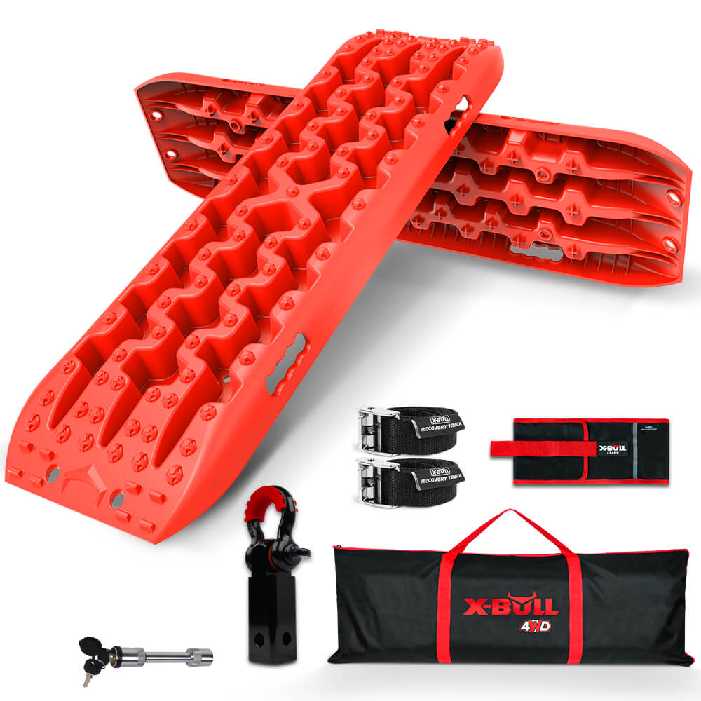X-BULL 4WD Recovery Kit Recovery Tracks Gen 3.0 Red Mounting Pins Snatch Strap Off Road 4X4