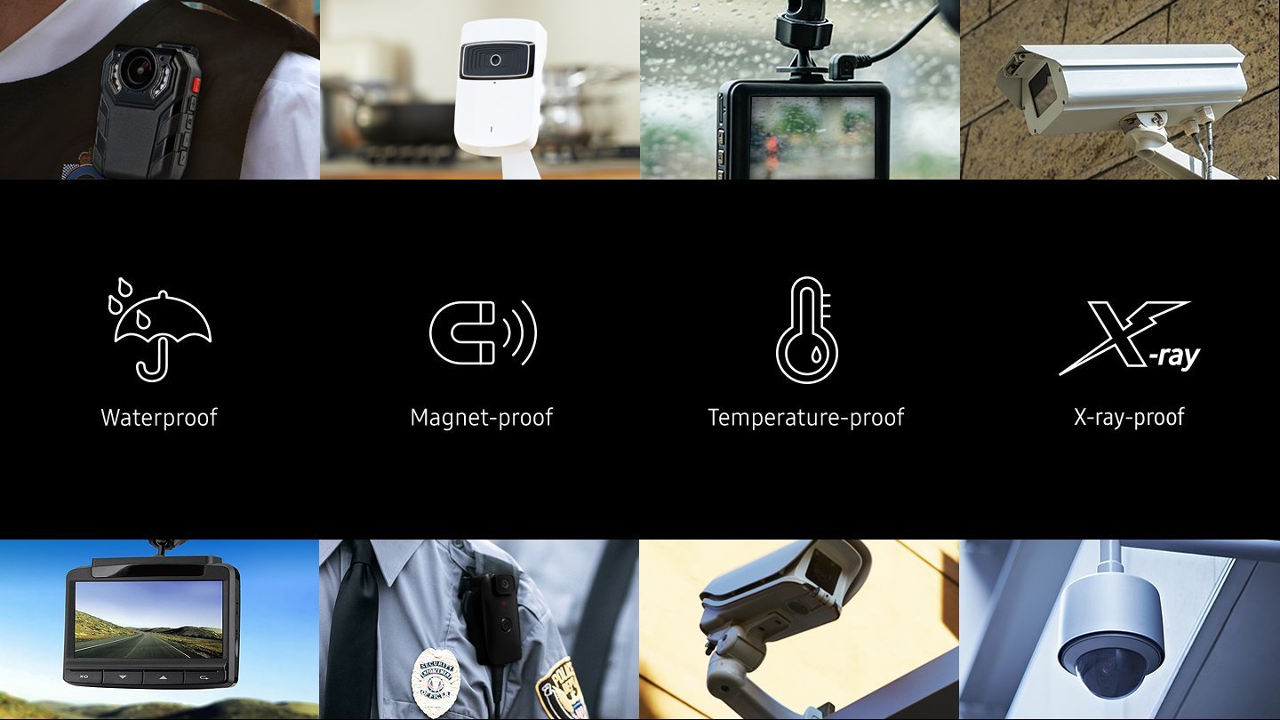 Designed specifically for video monitoring cameras (dash cams, surveillance & security cams, CCTV, body cams, etc.)