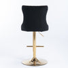2x Height Adjustable Swivel Bar Stool Velvet Studs Barstool with Footrest and Golden Base- Black