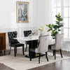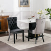 ERGONOMIC & HIGH-BACK DESIGN - With their wingback style, these dining chairs boast a high backrest that provides sturdy and comfortable support for your back. Designed ergonomically to accommodate various body types, they effectively protect your waist and back, alleviating the discomfort of prolonged sitting. The wide and tall backrest guarantees optimal comfort and seamlessly complements any dining table. The deep button tufted design on the high back adds a touch of delicacy and luxury to the entire chair.
