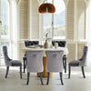 SOPHISTICATED & CONTEMPORARY DINING CHAIRS - These exquisite dining chairs exude elegance and modernity. Crafted with luxurious PU leather and velvet in a two-tone design, they create a visually striking and sophisticated piece with a sleek mid-century aesthetic. The chair is adorned with gleaming chrome handmade studs that accentuate the seat's base and sides, while a silver ring positioned at the top of the chair back adds a unique touch and facilitates easy pulling.