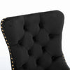 The set of upholstered dining chairs offers a perfect blend of comfort and elegance. The outwardly curled top edge of the backrest and thick, soft sponge padding seat ensure maximum comfort. The button-tufted design on the back cushion adds an elegant style to the chair, while the high and embraced backrest reduces fatigue and provides support to your body.