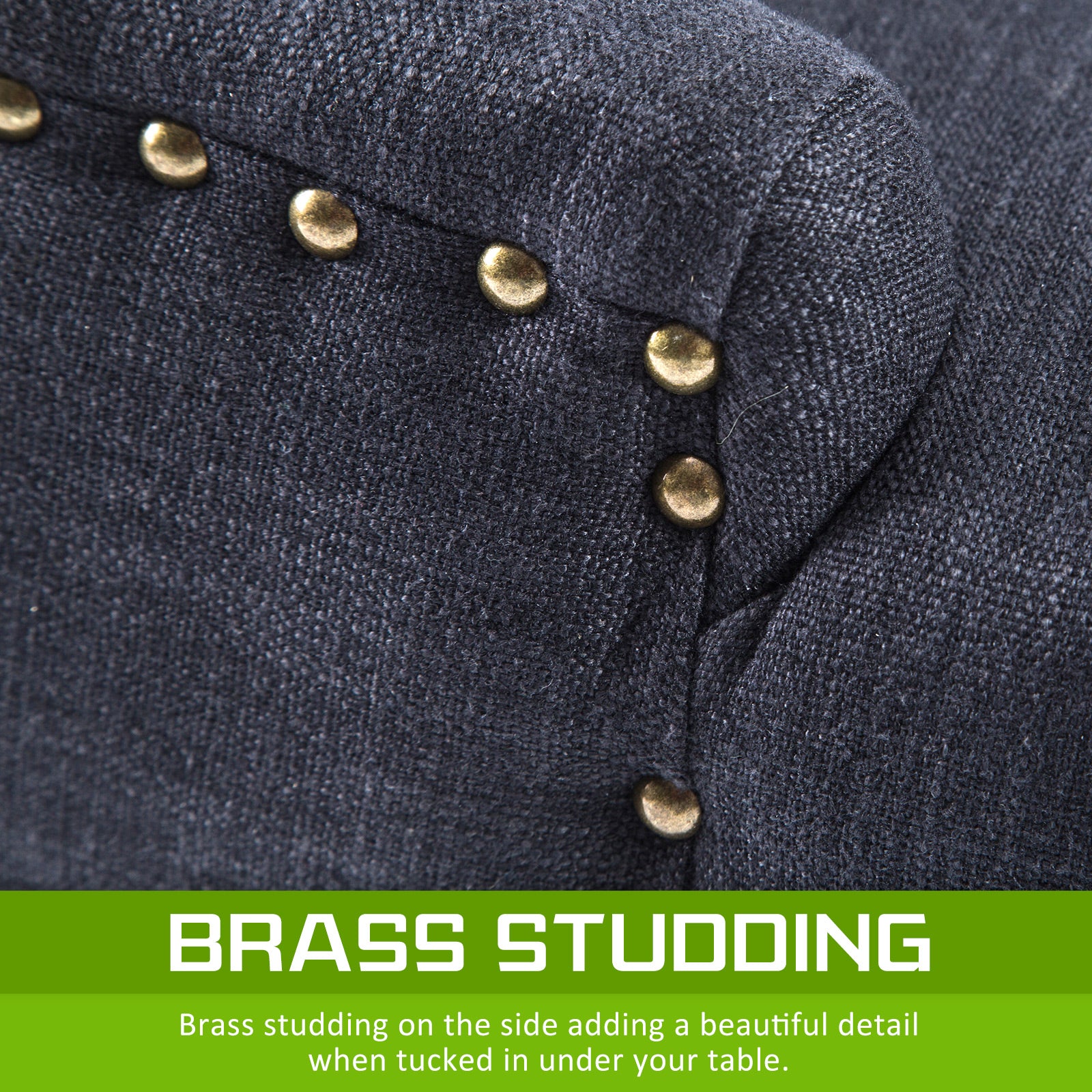 • Brass studding on the side adding a beautiful detail when tucked in under your table