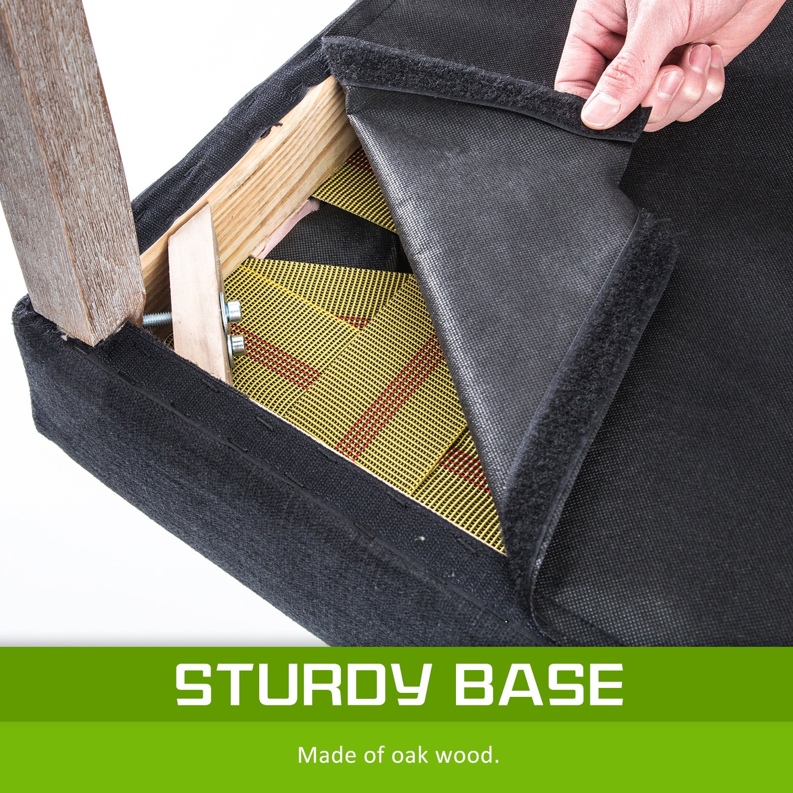 • Sturdy oak frame and solid wooden legs with a natural finish