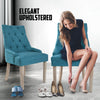 Padded with 13cm high resilience foam, this thick cushioned seat is wider than normal chairs. All these features will no doubt give top maximum comfort. Elegant upholstered, together with a deep tufting design and brass studding on edges, this French provincial style chair will definitely give you and your family and friends additional enjoyment, comfort and pleasure.