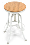 White Bar Stool Hamptons Style Height Adjustable and Swivel with Natural Wood Top