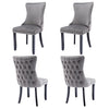 4x Velvet Upholstered Dining Chairs Tufted Wingback Side Chair with Studs Trim Solid Wood Legs for Kitchen