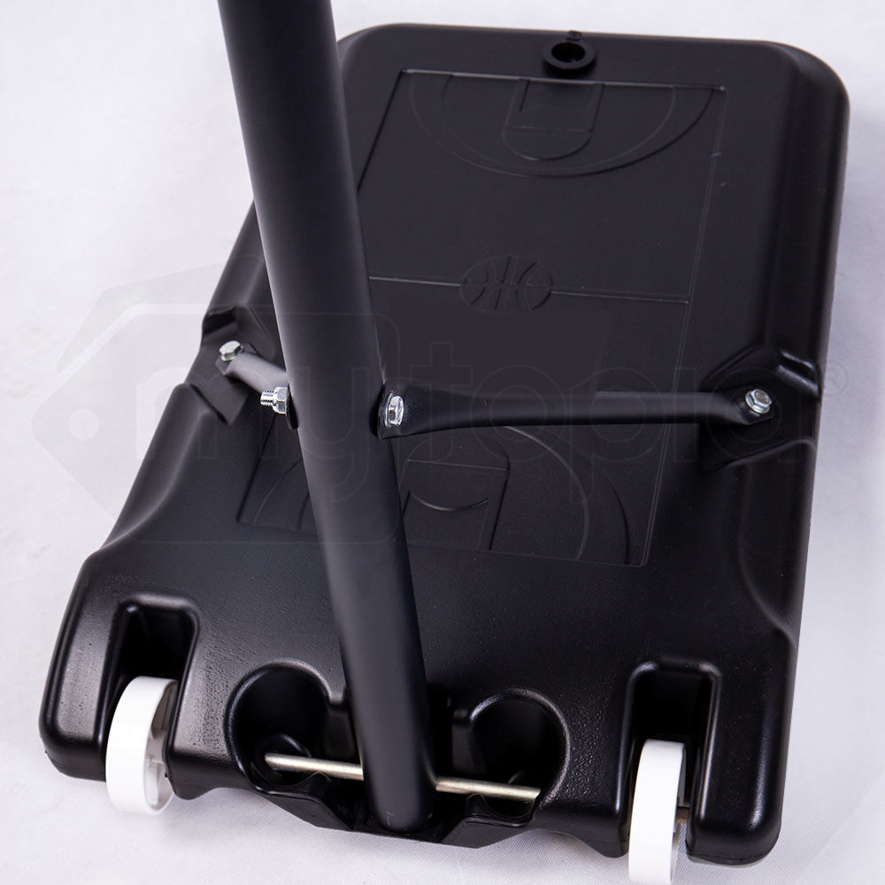The Dr.Dunk SBA305 G Series Basketball Stand is designed to provide your little baller with a high-quality, safe and fun playing experience. This portable hoop system has built-in wheels, allowing you to position it anywhere you please from the backyard to the end of the street. Made from steel tubing and durable blow moulding PE, it is sure to withstand the roughest games.