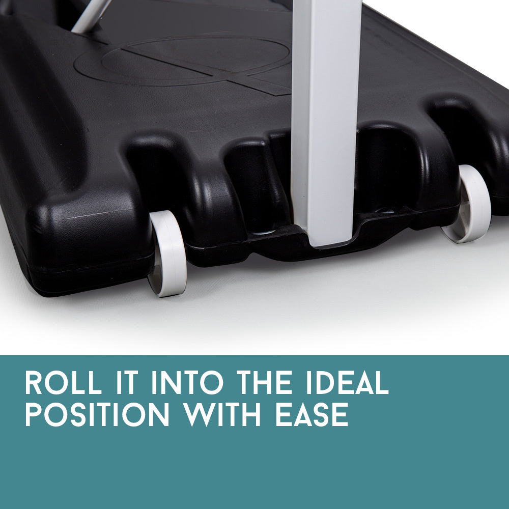You can be sure that your fun will last, with easy and quick set up. The Dr Dunk 8.5ft Basketball Hoop System includes a clear polycarbonate backboard, an adjustable steel pole, and a weighted mobile base on wheels that can take 90 litres of water for supreme stability. Set up and start shooting today.