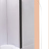 The door swings 180 degree out or in allowing easy and safe access to the shower. The sturdy frame is is in black finish which enhances any décor, strengthens the door and ensures you and your family of safe and enjoyable showers.