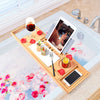 Relaxation:This bamboo bathtub caddy lets you enjoy a good book, watching movies on your tablet or a great glass of wine while you sit back and relax.