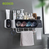 Ecoco Wall-Mounted Toothbrush Holder with 4 Cups and 4 Toothbrush Slots Toiletries Bathroom Storage Rack Grey