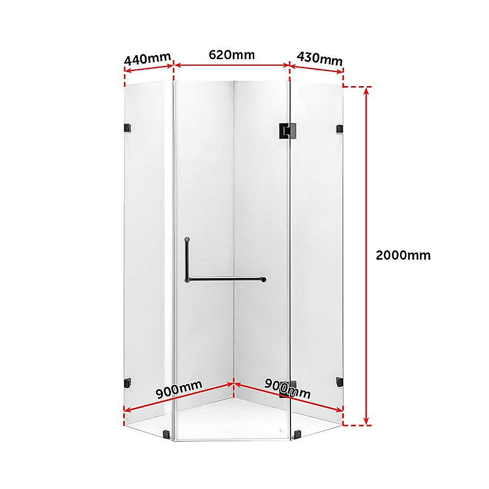 Della Francesca Frameless Shower Screens - Great Style for an affordable Price 900 x 900 x 2000 Diamond Shape Finish