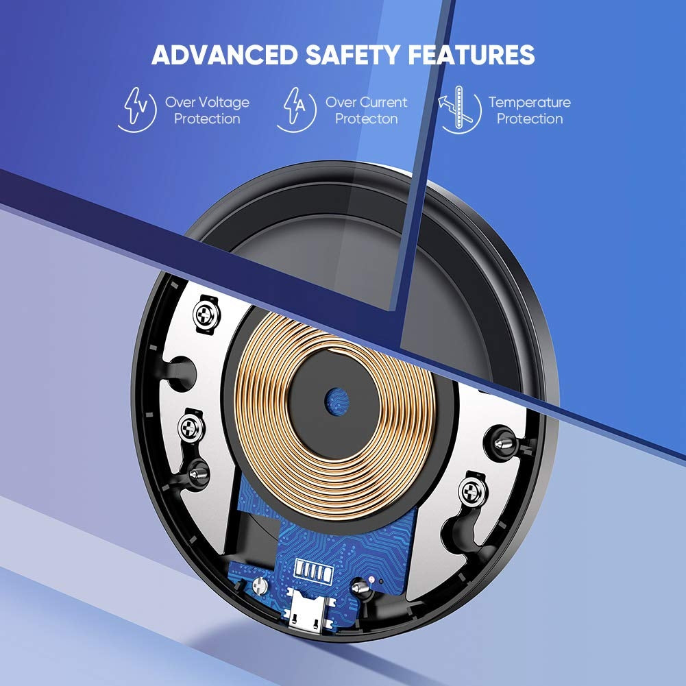 Multiple Protection for Wireless Charging - Equipped with secure and high-intergraded IC chips inside, features safe charging against over-heating, over-charging, over-current and over-voltage, makes the charging safe and sound, the package includes the wireless charger and charging cable;