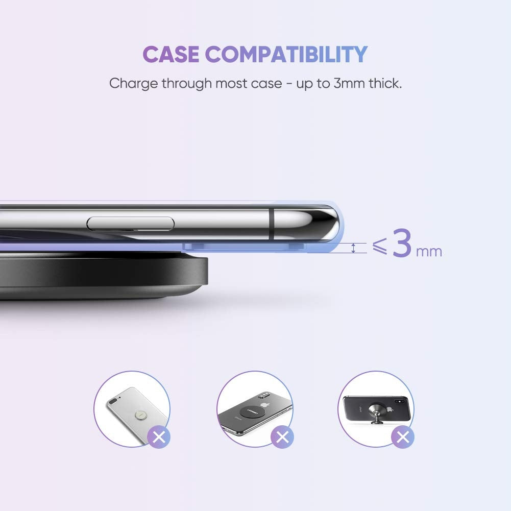 Wireless Charger for iPhone - UGREEN QI wireless charger built-in with the latest QI wireless charging technology, supports wireless charge for iPhone 11/11 Pro/11 Pro Max, iPhone 8, 8 plus, iPhone X/XR/XS/XS Max with optimal 7.5W power, compatible with WPC-Qi-V1.2.4 Wireless charging standard, also support wireless charging for QI ready phones like, LG, Sony, Pixel phones allows users to enjoy the ease of wireless charging;
