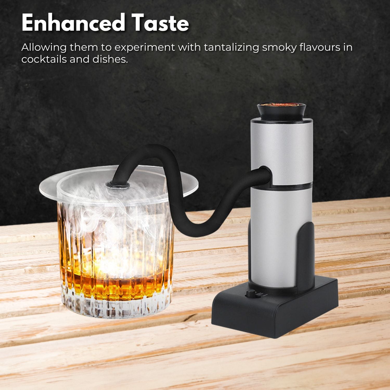 No Outlet Required: Powered by battery-operated technology, this smoker brings the joy of flavour infusion to your fingertips, wherever you go. Enjoy the flexibility to enhance your cocktails and dishes with rich, natural smoke without the constraints of cords or outlets.