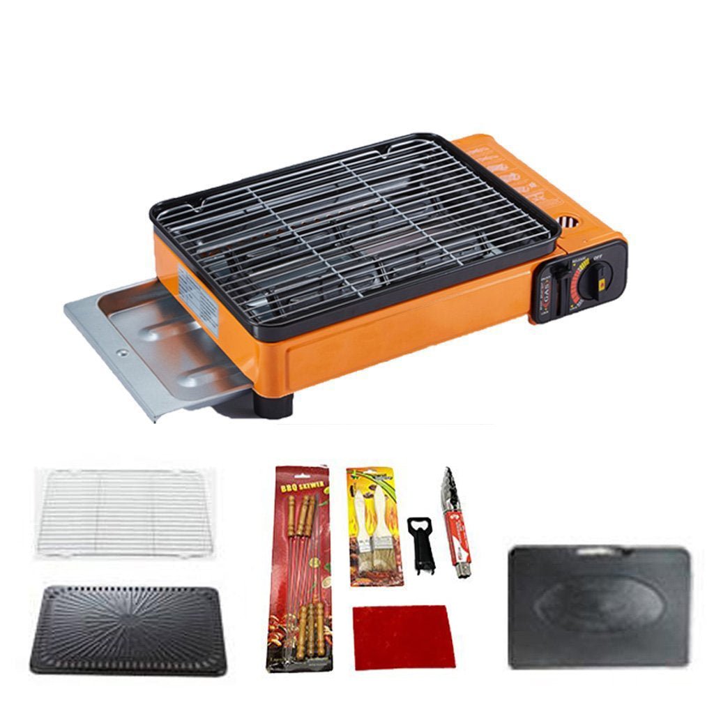Portable Gas Stove Burner Butane BBQ Camping Gas Cooker With Non Stick Plate Orange without Fish Pan and Lid