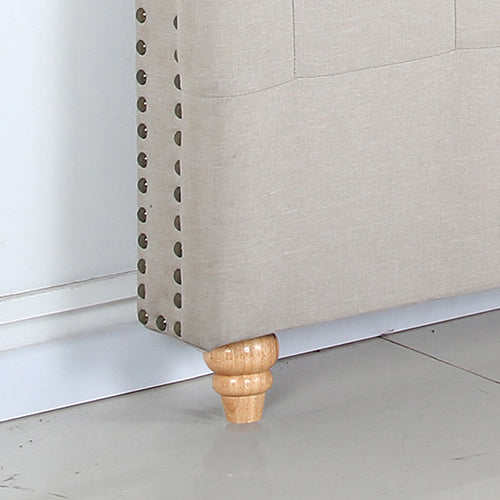 Please note that the headboard is meant to place along the wall so that the back side of it cannot be seen. To reduce the unnecessary cost, we use a black cover instead of linen fabric. You can find the unassembled legs inside this black cover.