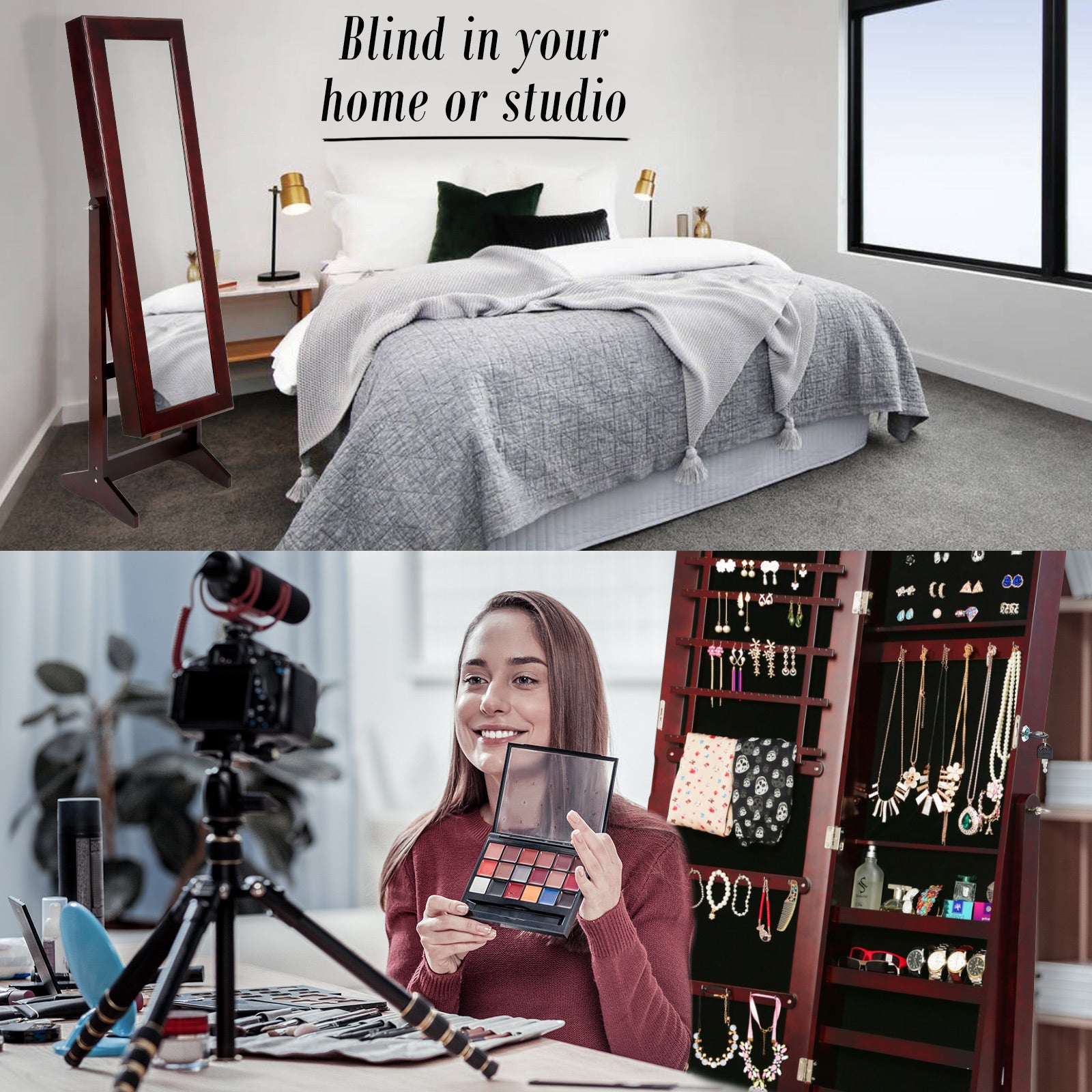 There are many earring hangers, necklace hooks, ring slots, and shelves to make it easier to separate and organise your precious jewelleries. You can certainly find many ways to arrange your accessories so you will be able to find a perfect way only for yourself! The black flock-lined interior will give your shiny jewelleries a nice contrast and under light, it will look even better!