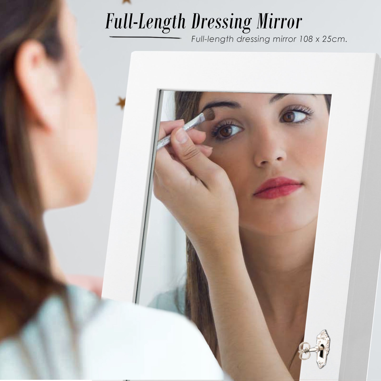 La Bella Mirror Jewellery Cabinet LOWE 146cm Organiser 2 Drawers - White